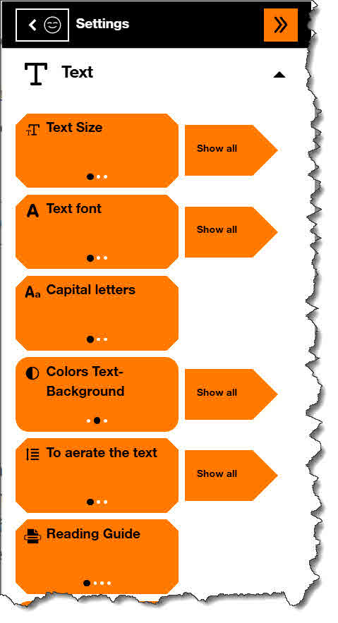 To modify settings, you have quick access to a selection via large buttons. These buttons can be clicked multiple times in a row (3 or 4 times), and the various settings will then be applied to the webpage.